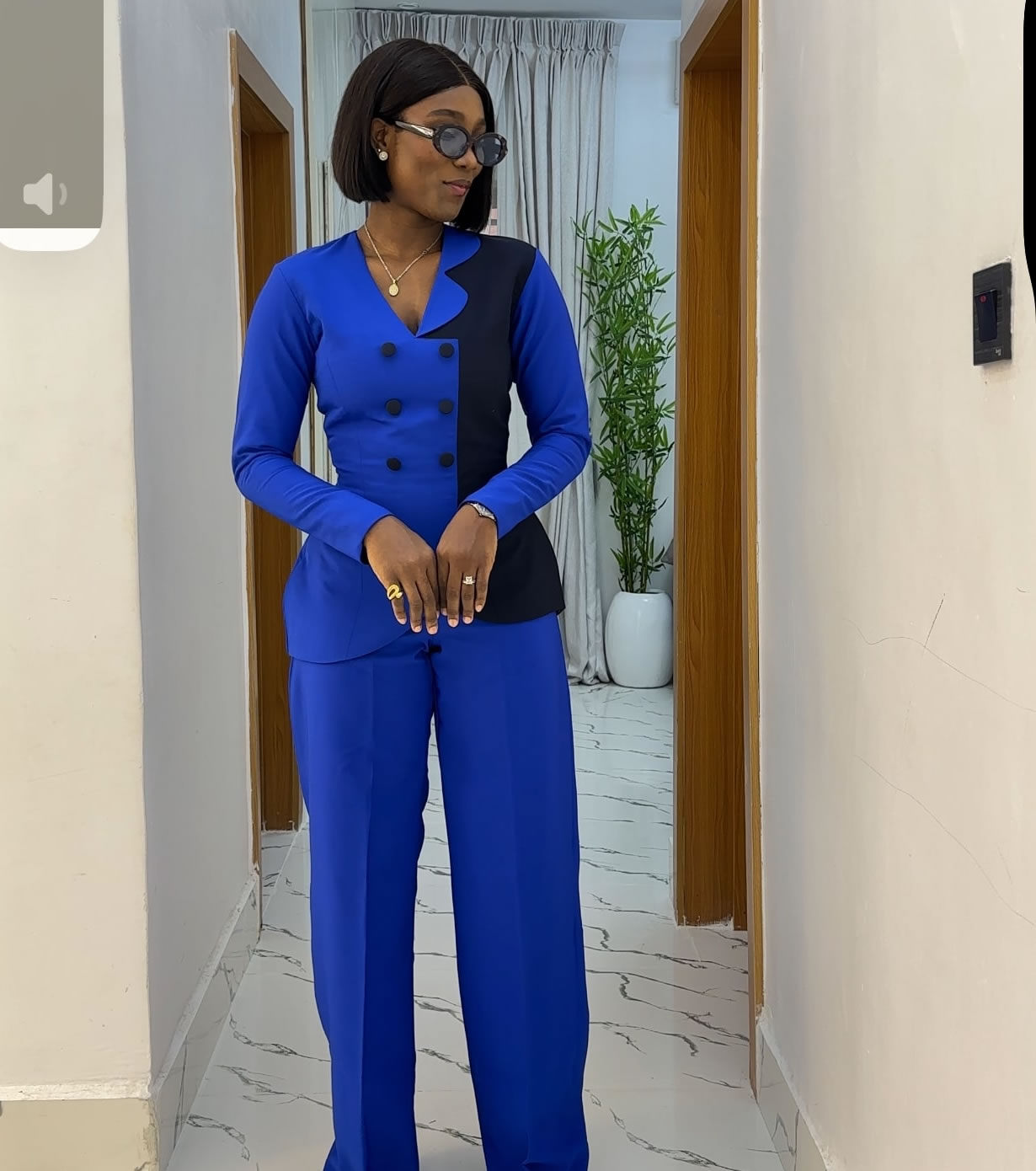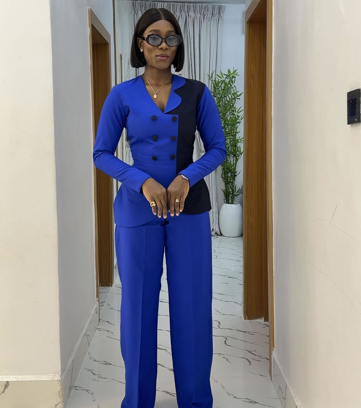 Two toned pants set with buttons details
