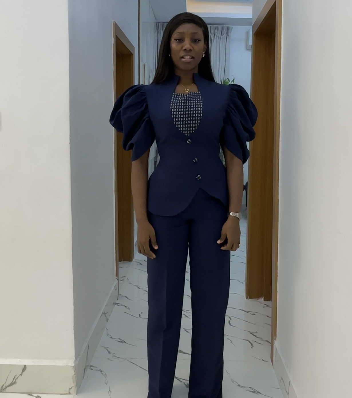 Crepe and tweed fabric paired to create a  very unique masterpiece.