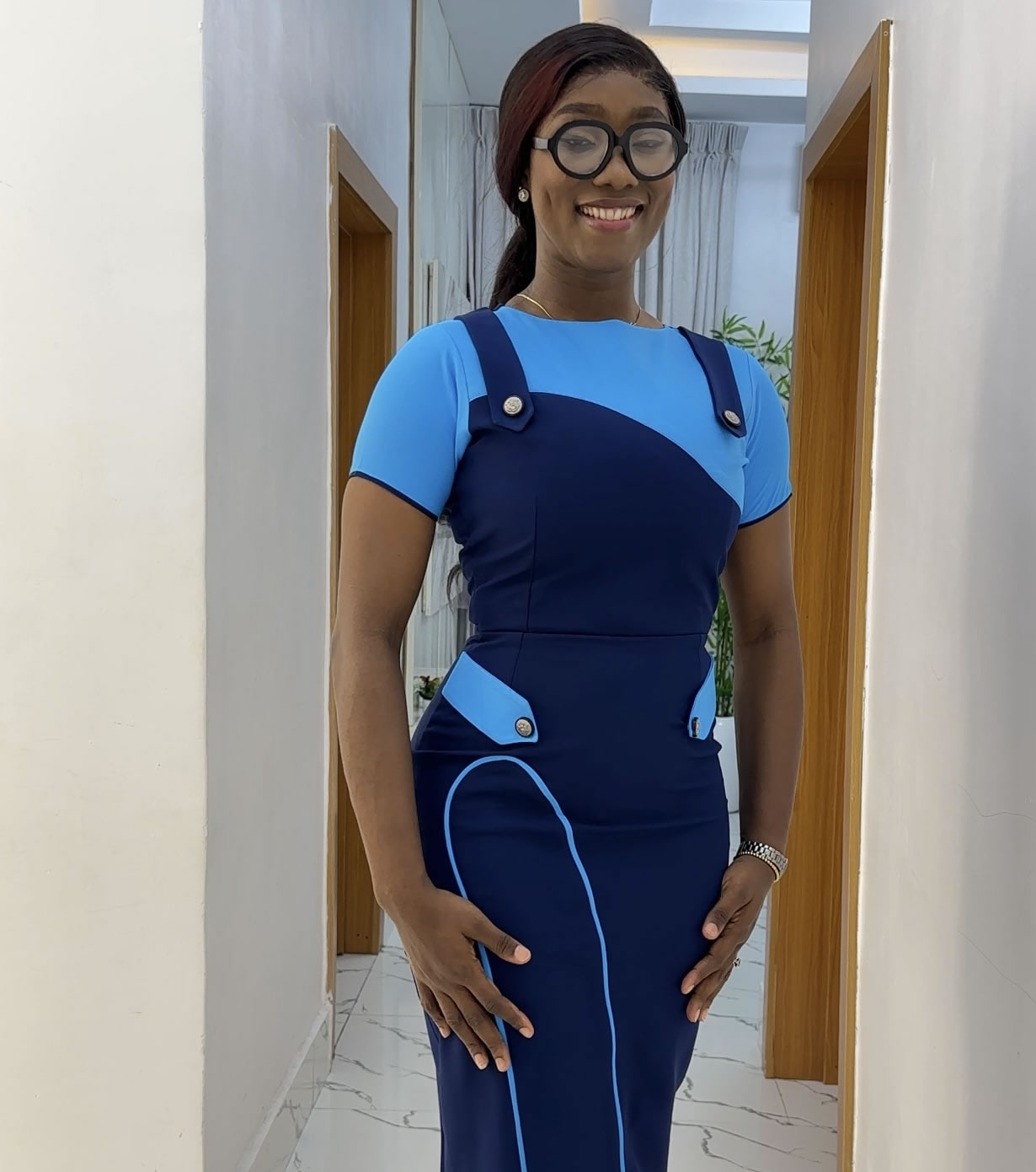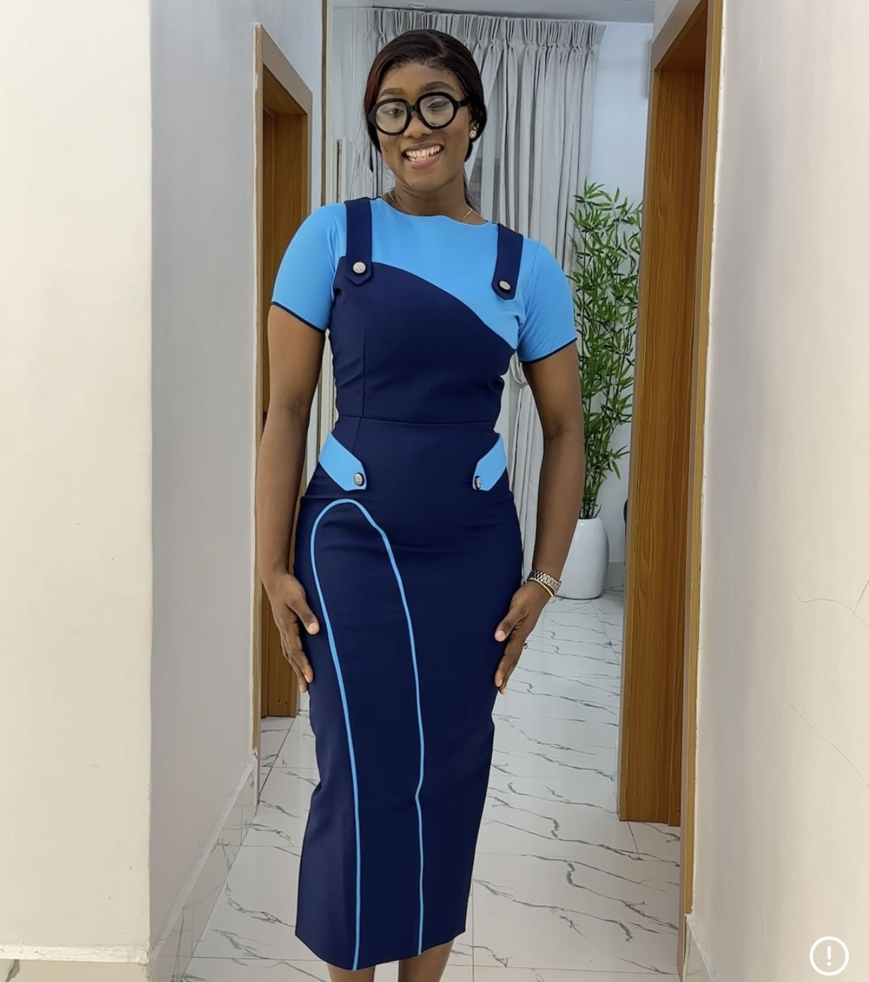 2 toned dress with a silver button detail