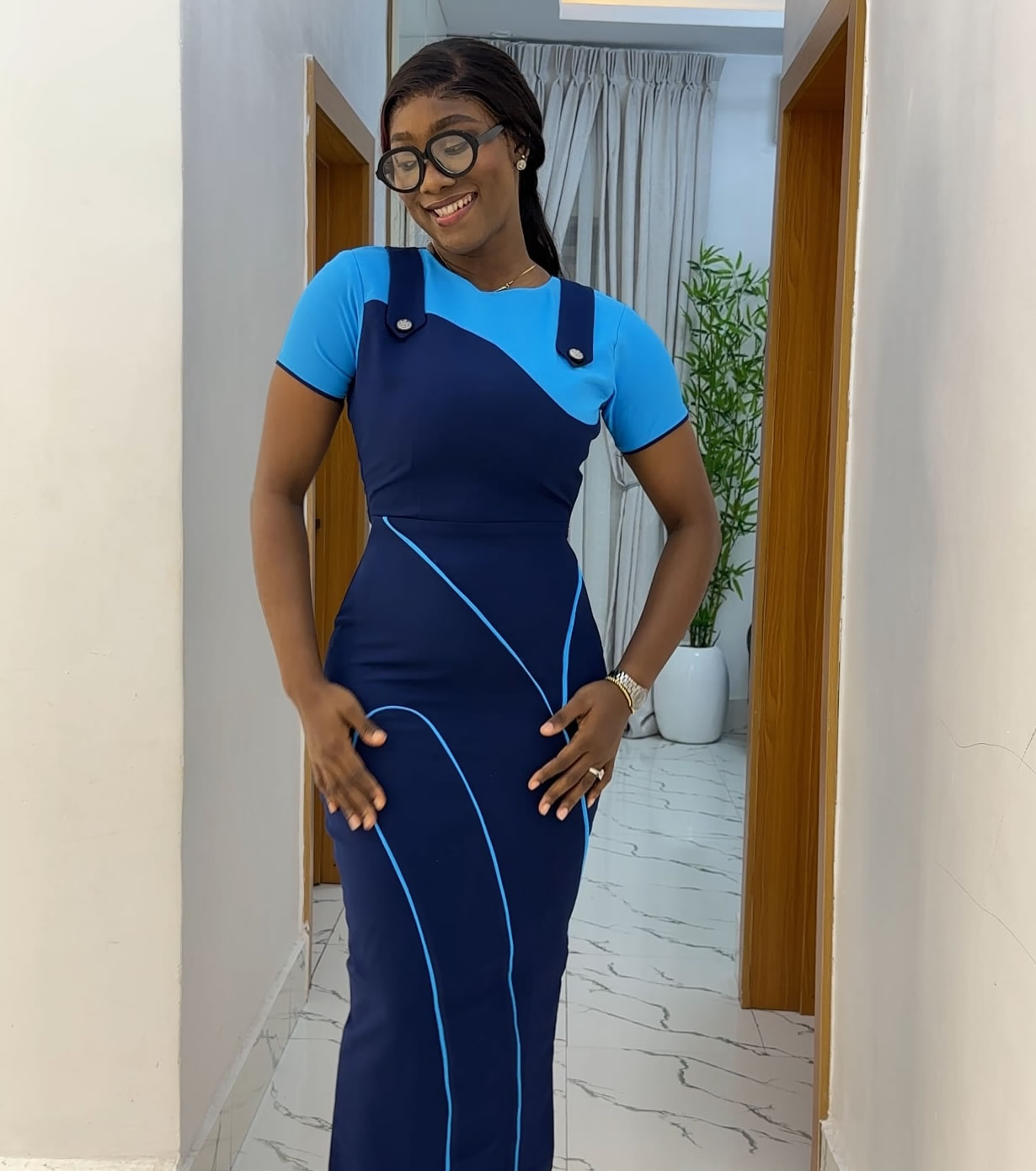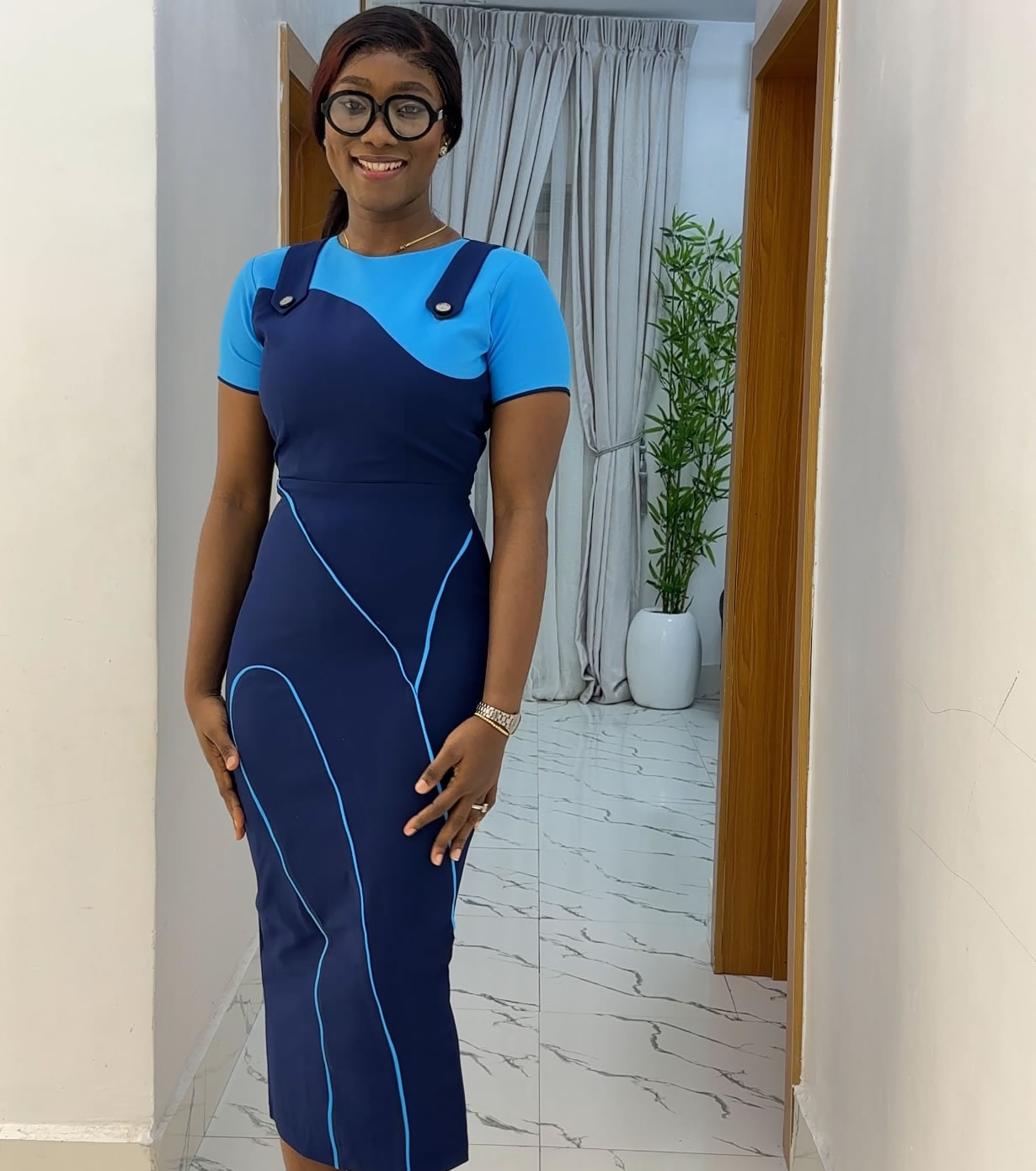 2 toned dress with a silver button detail