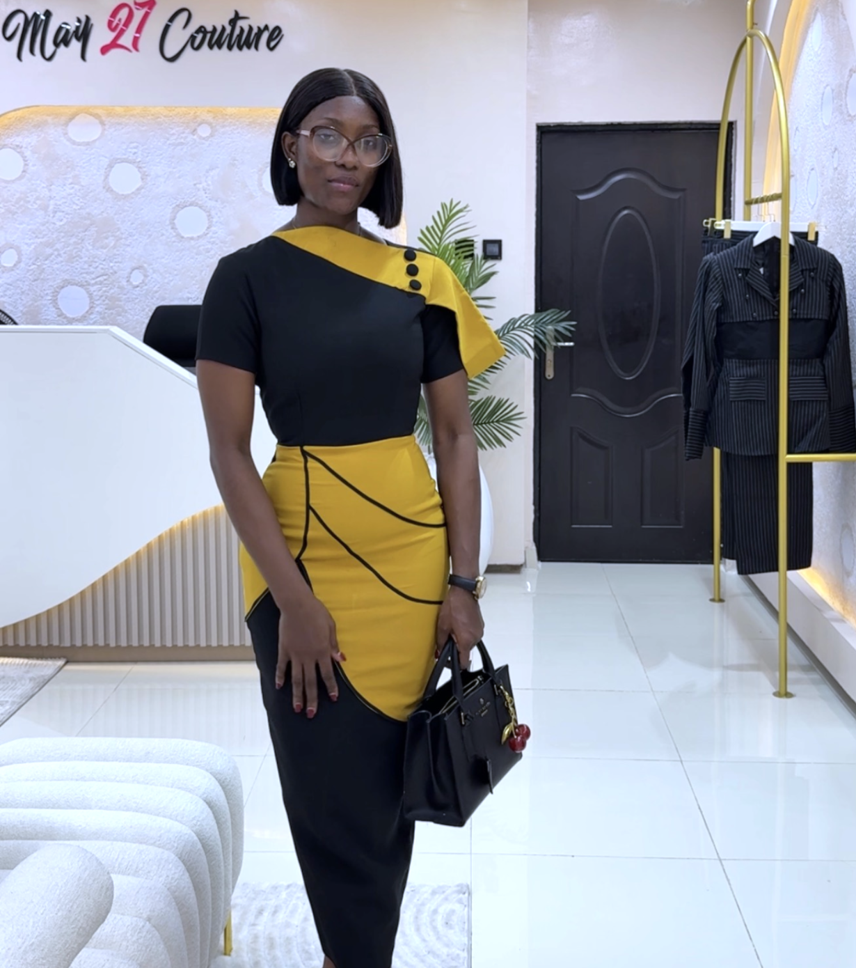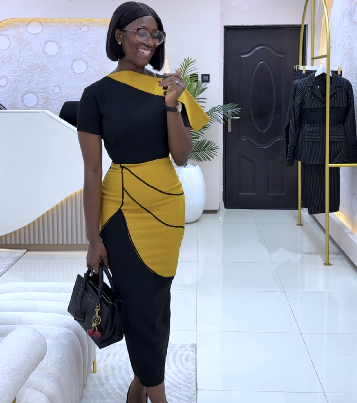 Black and Mustard is in this combination is just the perfect match for this dress!